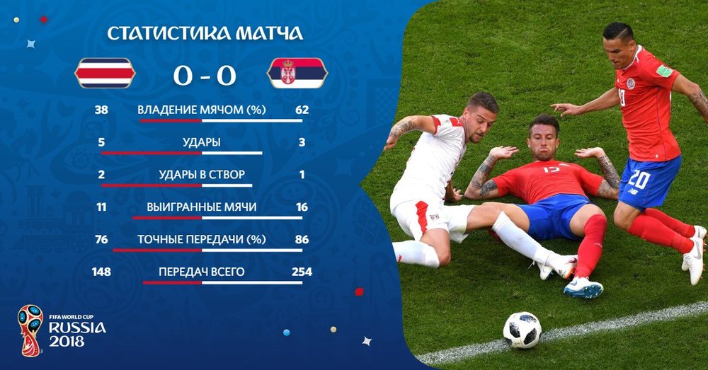16.58 Поединок Коста-Рика - Сербия завершился минимальной победой балканской команды.