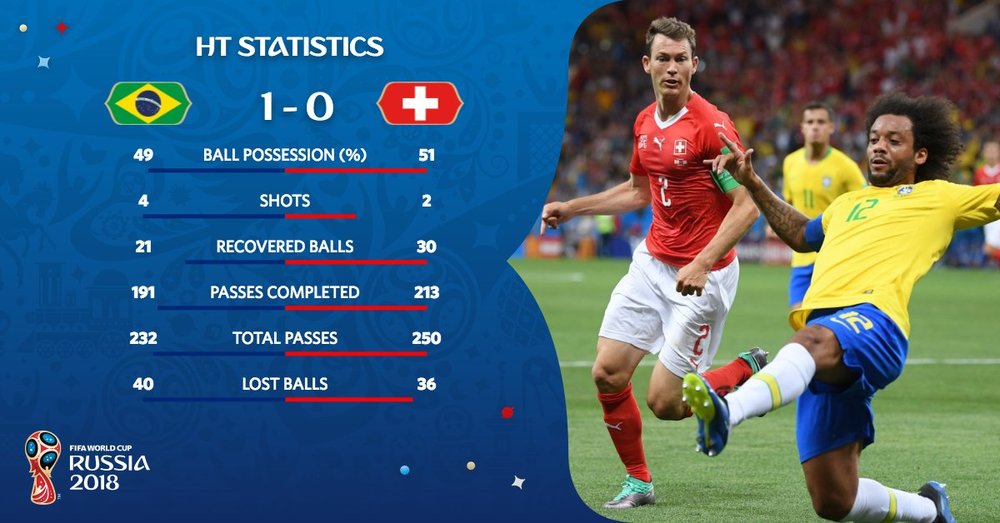23.12 Статистика говорит о тотальном преимуществе бразильцев в поединке с командой Швейцарии, но счет - на табло.