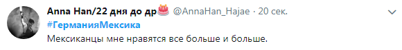 27 В разящей ответной контатаке, начавшейся умным и точным пасом из глубины, мексиканцы снова продавили правый фланг немецкой обороны, сместились в центр и Лайюн завершал. К сожалению для многомиллионного Мехико - выше ворот! Выдохнули в Берлине. Но за правый фланг обороны немцев слегка тревожно. Должно быть им.