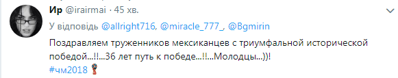 "Мы покажем хорошую игру и красивый футбол. Вы увидите великолепный матч и получите наслаждение от выступления нашей команды", – сообщил перед игрой наставник мексиканцев.