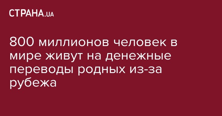 На сегодня 800 млн человек по всему миру живут за счет денежных переводов, которые они получают от родственников, работающих в других странах.