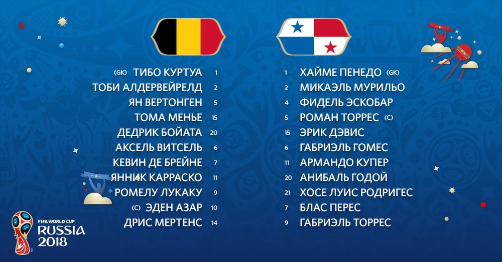 17.32 Вот и стартовые составы Бельгии и Панамы, которые начнут играть в 18.00