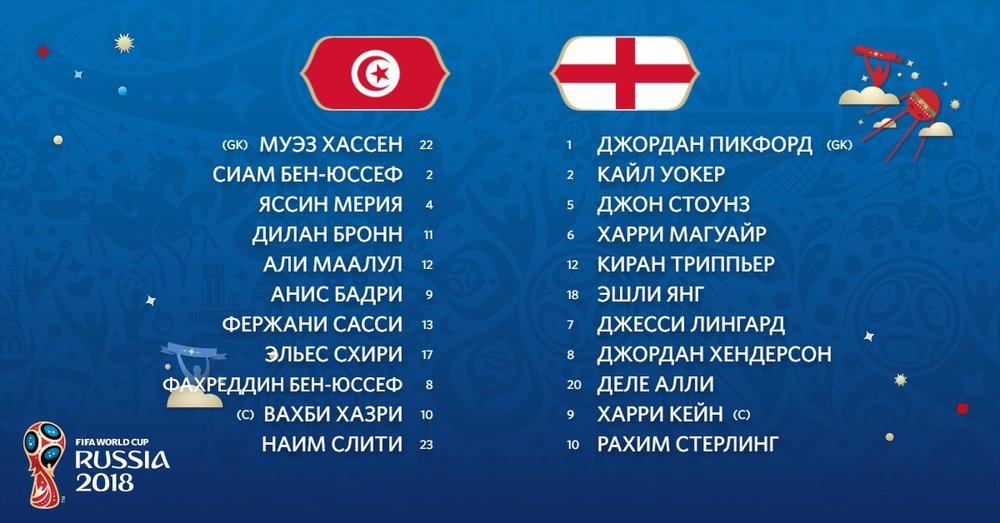 20.08 Вот и стартовые составы вечернего матча в Волгограде, где сборная Туниса примет команду Англии.