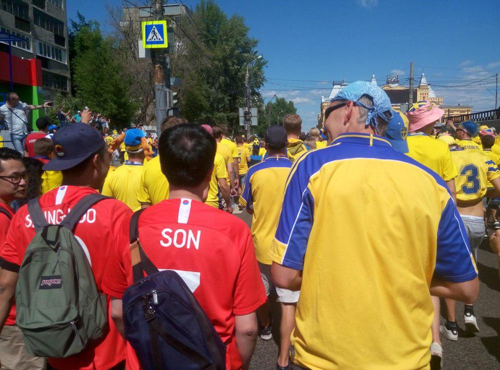 16.22 - Шведы и корейцы гуляли вместе и на стадион шли тоже вместе. Обстановка вполне миролюбивая, сообщает корреспондент "Страны" с места событий.