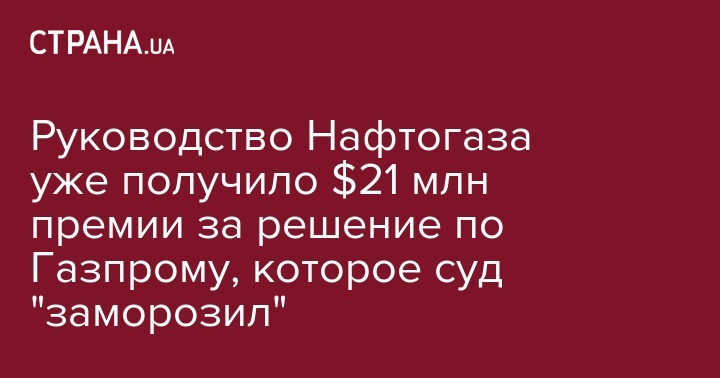 Напомним, наблюдательный совет "Нафтогаза" решил премировать сотрудников компании на сумму в 46,3 млн долларов в связи с победой в Стокгольмском арбитражном суде по транзитному контракту, по решению которого "Газпром" должен выплатить украинской компании 4,6 млрд долларов.  При этом с учетом решения арбитража по контракту на поставки газа, окончательная сумма расчетов между компаниями составляет 2,6 млрд долларов в пользу "Нафтогаза" Сумма премии была разделена на две части. В мае этого года должна была быть выплачена первая часть премий на сумму 20,7 млн долларов, что составляет 1% от объема выигрыша, уже признанного в финансовой отчетности "Нафтогаза" за 2017 год.  Остальные премии будут выплачивать в течение трех лет исключительно при условии успешного взыскания с "Газпрома" остатка выигрыша (2,6 млрд долларов).
