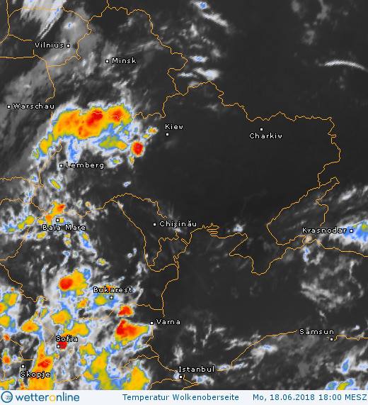 "На северо-западе Украины, на Волыни, Ровенской области сейчас чрезвычайно активная атмосфера. Красные ячейки на спутниковом фото свидетельствуют о высокой вероятности сильных ливней, грозы, шквала, града и даже, возможно, смерча", написала она.