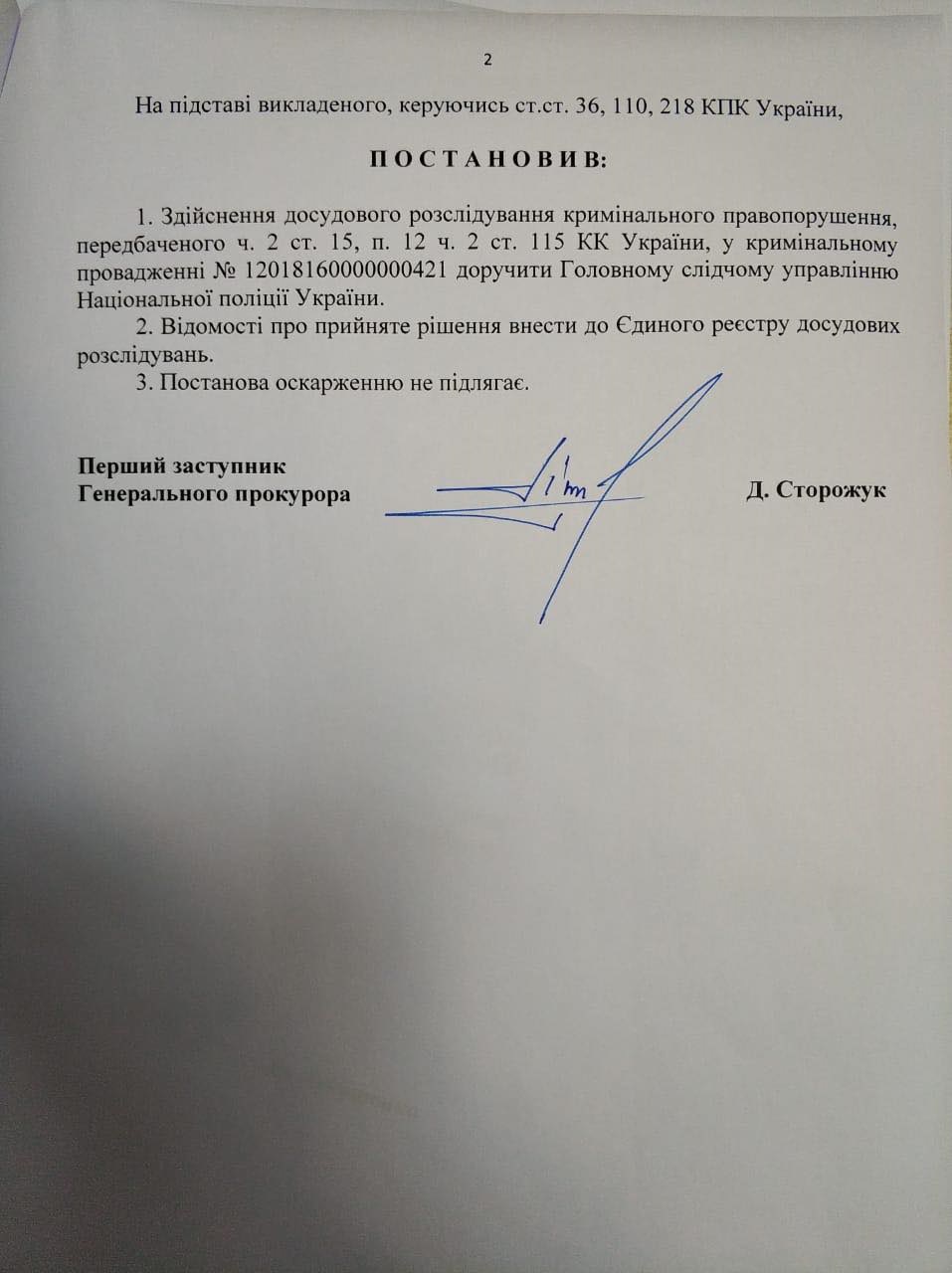 Об этом свидетельствует постановление Генеральной прокуратуры Украины, которое имеется в распоряжение "Страны".