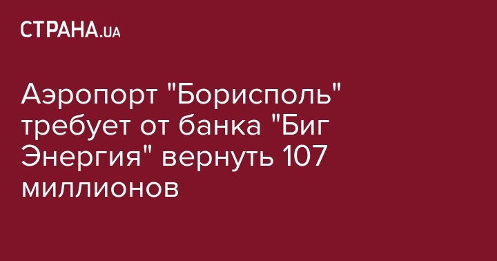 Сообщается, что в ноябре 2006 года аэропорт "Борисполь" открыл в банке "Биг Энергия" депозитный счет. В феврале 2010 года у банка отозвали его лицензию и с 1 марта началась его ликвидация.