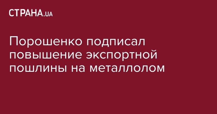 В понедельник, 18 июня, президент Украины Петр Порошенко подписал закон, предусматривающий продление действия пошлин на экспорт лома черных металлов еще на один год - до 15 сентября 2019 года. Об этом свидетельствуют данные законопроекта № 8226 на сайте Верховной Рады.