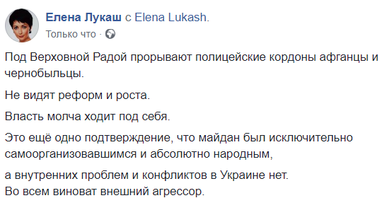 Во всем виноват внешний агрессор", - пишет в Facebook адвокат Елена Лукаш.