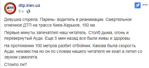Девушка сгорела в ДТП на трассе Киев-Харьков: Audi "на скорости самолета" влетела в отбойник