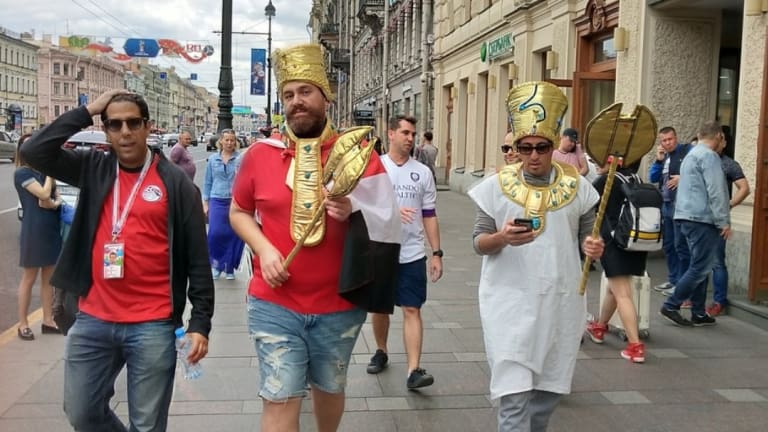 20.15 В Питер приехало много болельщиков сборной Египта, они гуляют по городу и любуются разведением мостов. Узнать их можно издалека.