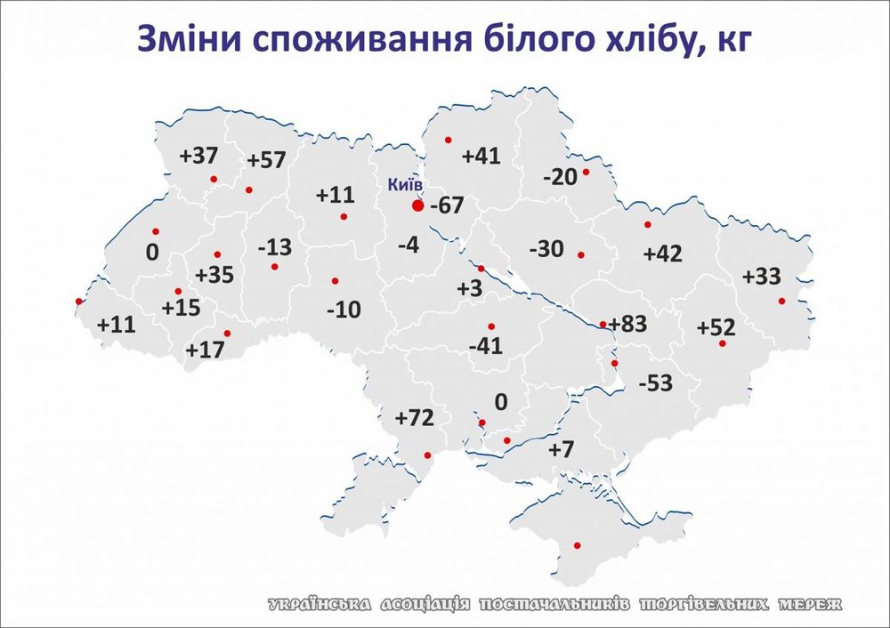 В сообщении отмечается, что только в 15 регионах, то есть в 60%, за год потенциально увеличилось потребление белого хлеба, а в 30% оно упало. В других за год покупательная способность не изменилась.