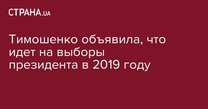 Лидер партии ВО "Батькивщина" Юлия Тимошенко заявила, что примет участи в президентских выборах в 2019 году.