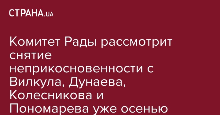 Комитет Рады рассмотрит снятие неприкосновенности с Вилкула, Дунаева, Колесникова и Пономарева уже осенью