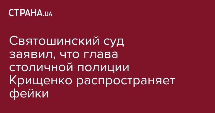 Святошинский районный суд на свой странице сообщил, что 20 июня начальник столичной полиции Андрей Крищенко разместил на своей странице в Facebook недостоверную информацию о том, что якобы суд безосновательно выпустил из-под стражи бандитов, которым грозит до 15 лет лишения свободы.