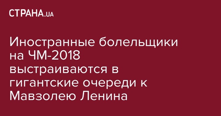 Одной из главных достопримечательностей для фанов на ЧМ-2018 стал в Москве Мавзолей Ленина. Главный редактор киностудии имени М. Горького Андрей Апостолов опубликовал фото огромной очереди к Мавзолею, которая растянулась на Красной площади в дни проведения ЧМ-2018.