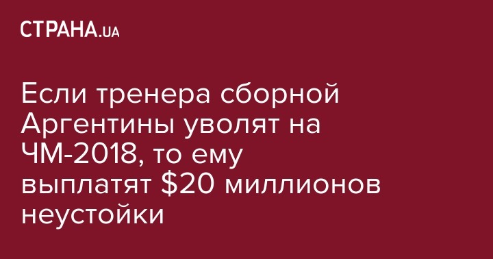 Ведь если Ассоциация футбола Аргентины расторгнет досрочно контракт с Сампаоли, то ей прийдется выплатить тренеру - неудачнику гигантскую неустойку в размере $20 миллионов. Об этом сообщает аргентинский телеканал TyC Sports.
