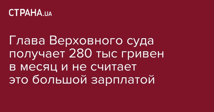 Глава Верховного суда получает 280 тыс гривен в месяц и не считает это большой зарплатой