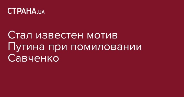 Стал известен мотив Путина при помиловании Савченко