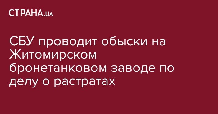 Сотрудники Службы безопасности Украины и военной прокуратуры проводят обыски на государственном предприятии "Житомирский бронетанковый завод".