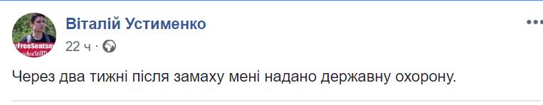 Лидеру одесской ячейки "Автомайдана" Виталию Устименко предоставили государственную охрану. Об этом активист сообщил в Facebook.