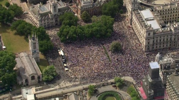 Cегодня, 23 июня, на вторую годовщину референдума Brexit за выход из состава ЕС, тысячи людей вышли на протест в Лондоне. Они требуют провести новый всенародный опрос.