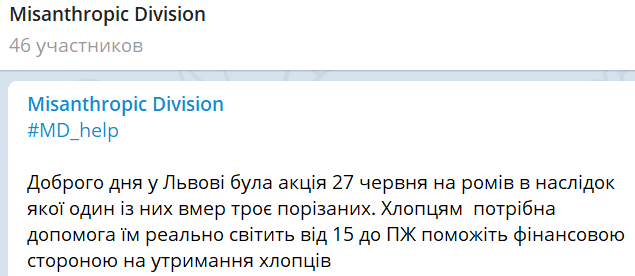 Интересно, что в день погрома – 24 июня – появился Telegram-канал Misanthropic Division, который начал собирать деньги на помощь задержанным подросткам.