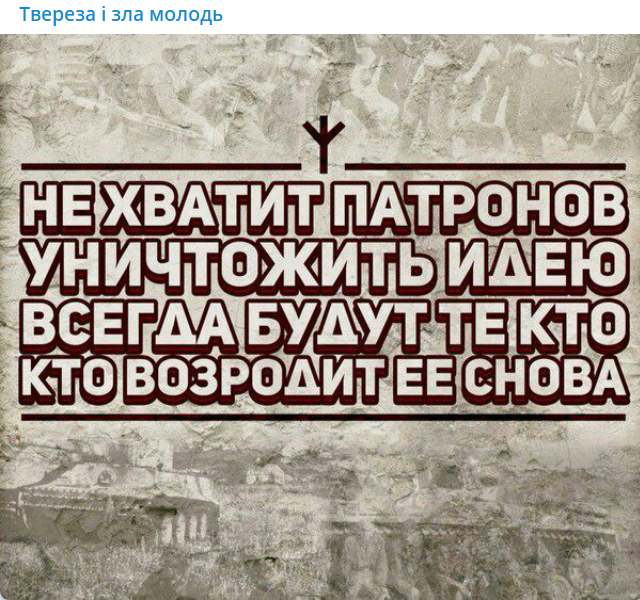Вообще многие картинки на канале идут на русском языке. Скорее всего, администратор группы берет мемы из других неонацистских пабликов.