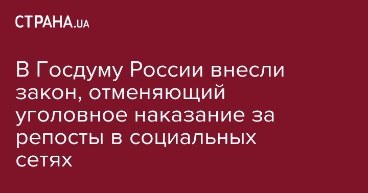В Госдуму России внесли закон, отменяющий уголовное наказание за репосты в социальных сетях