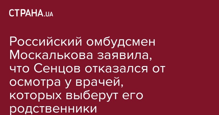 Российский омбудсмен Москалькова заявила, что Сенцов отказался от осмотра у врачей, которых выберут его родственники