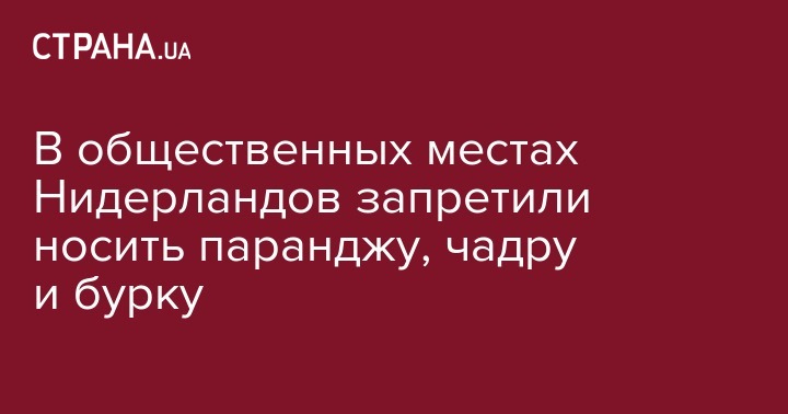 Верхняя палата парламента Нидерландов запретила ношение в общественных местах элементов мусульманской одежды, скрывающих лицо. Например, никаба.