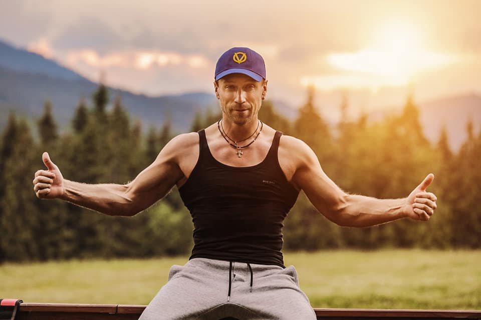 Певец Винник "поиграл" в Карпатах рельефными мышцами