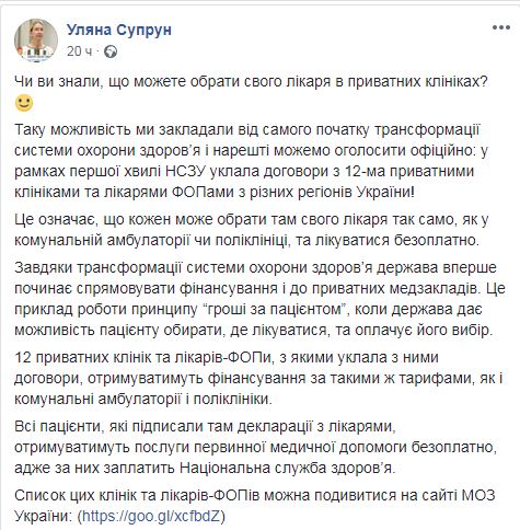 Об этом в своем Facebook сообщила министр Ульяна Супрун.