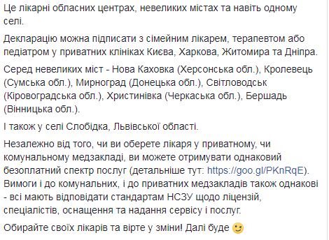 В свою очередь пациенты, подписавшие там декларации с врачами, будут получать услуги первичной медпомощи бесплатно. Список этих клиник и медиков, которые находятся в Киеве, Харькове, Житомире и Днепре, обнародован на сайте Минздрава.