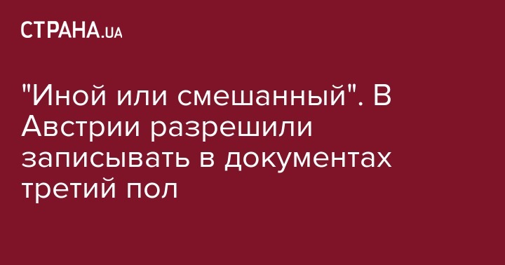 Конституционный суд Австрии дал согласие на внесение в книги записи актов гражданского состояния (ЗАГС) т.н. "третьего пола". Суд рекомендовал к использованию для таких людей определения "иной", "смешанный", "неопределенный".