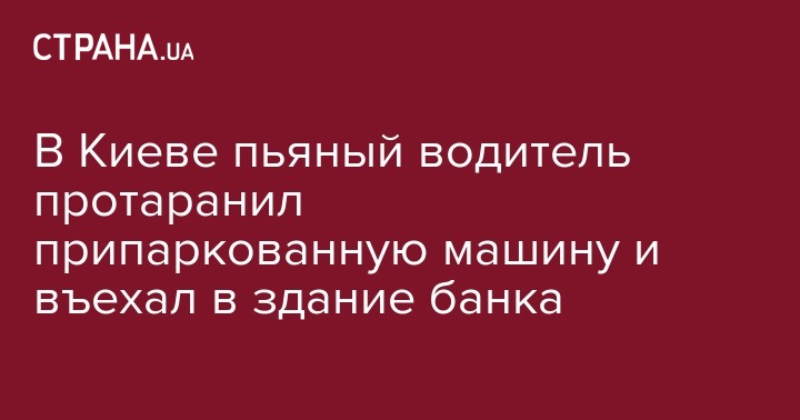 В Киеве пьяный водитель протаранил припаркованную машину и въехал в здание банка