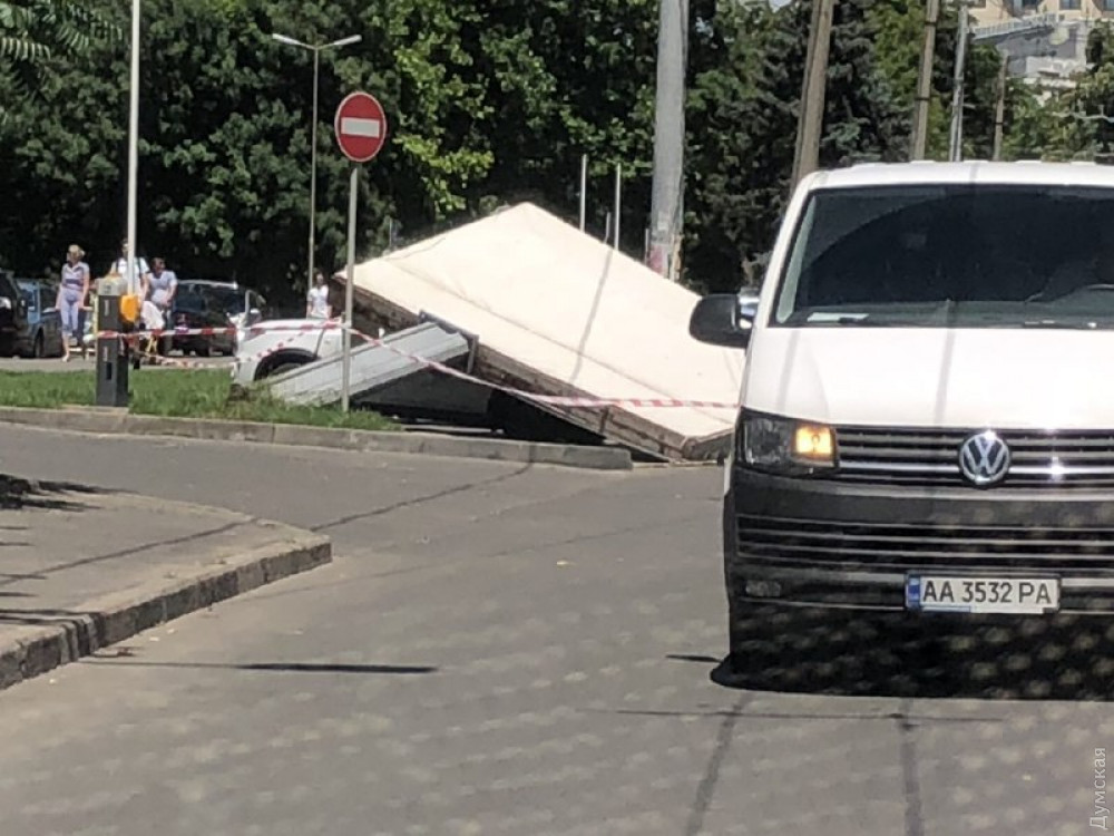 В субботу, 30 июня, в Одессе рекламный билборд рухнул на припаркованный автомобиль. Об этом сообщает местное издание "Думская".