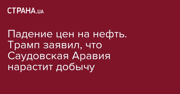 Падение цен на нефть. Трамп заявил, что Саудовская Аравия нарастит добычу