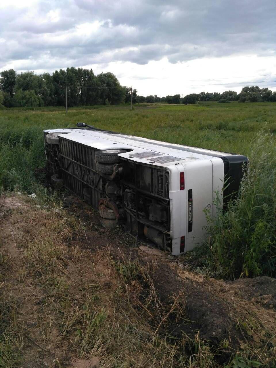 Сегодня, 1 июля, в Дубенском районе Ровенской области перевернулся пассажирский автобус, в котором находились 53 человека. Инцидент произошел в 15:00 на 395 км ухабистой трассы Киев - Чоп, между селами Птичья и Верба.