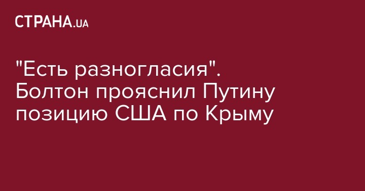 "Президент Путин был достаточно откровенен со мной по поводу присоединения Крыма к России. Я ответил, что в этом вопросе нам придется признать наличие разногласий", – заявил Болтон.