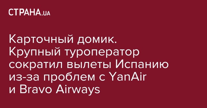Туроператор Join UP! сокращает полеты в Испанию, в том числе на Пальму-де-Майорку,  из-за участившихся неисправностей и регулярных задержек вылетов авиакомпаний YanAir и Bravo Airways, сообщила пресс-служба компании, его цитирует Интерфакс-Украина.