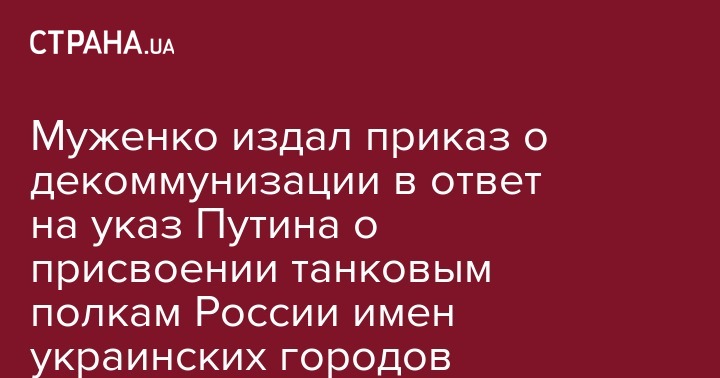 Об этом он написал на своей странице в соцсети, таким образом ответив на то, что накануне Путин присвоил танковым полкам российской армии названия украинских городов. В своем сообщении Муженко резко раскритиковал указ президента России.