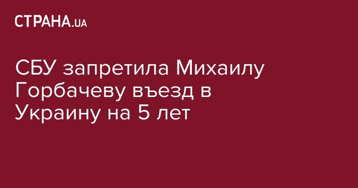 Служба безопасности Украины запретила экс-президенту СССР Михаилу Горбачеву въезд в Украину сроком на 5 лет из-за высказываний о Крыме. Об этом на своей странице Facebook сообщила спикер ведомства Елена Гитлянская.