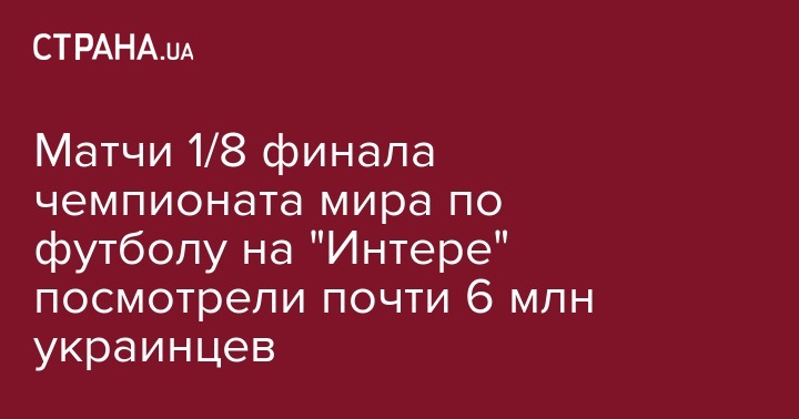 Матчи 1/8 финала чемпионата мира по футболу на "Интере" посмотрели почти 6 млн украинцев