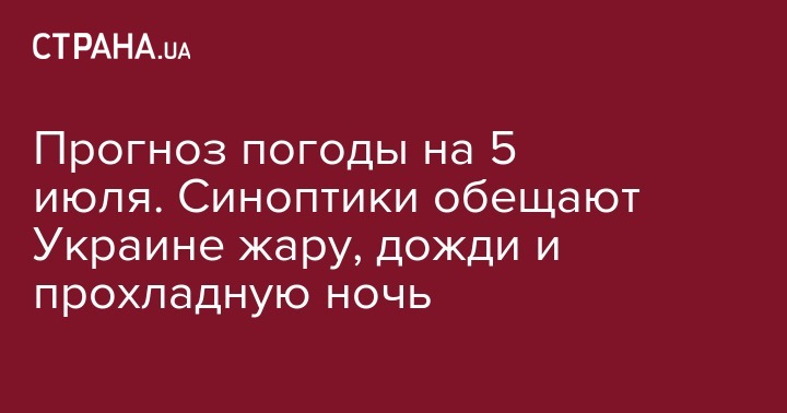Прогноз погоды на 5 июля. Синоптики обещают Украине жару, дожди и прохладную ночь