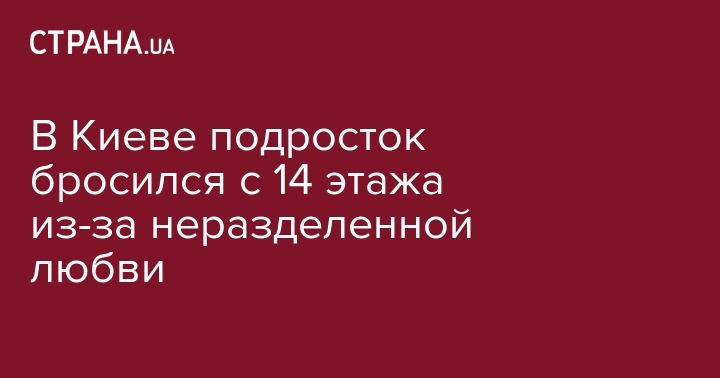 Ранее на Киевщине влюбленный подросток оборвал себе жизнь на почве ревности. Ночью после дискотеки парень не справился с эмоциями.