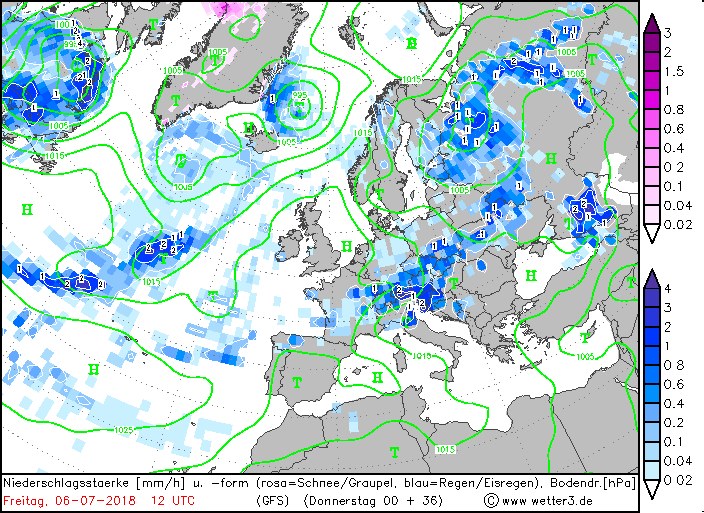 Синоптик Наталья Диденко рассказала о погоде в пятницу, 6 июля накануне дня Ивана Купала, что в Атлантике лежит себе антициклон и пытается не пускать высоким атмосферным давлением дожди на континент, это и обеспечивает ясную погоду, но все равно прорываются вторичные атмосферные фронта, которые обусловливают дожди.