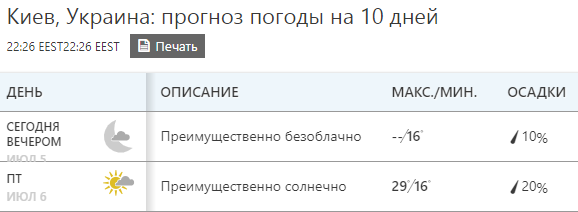 А сайт Weather.com считает, что в пятницу дождя в Киеве не будет.