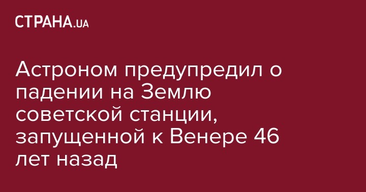 Астроном предупредил о падении на Землю советской станции, запущенной к Венере 46 лет назад